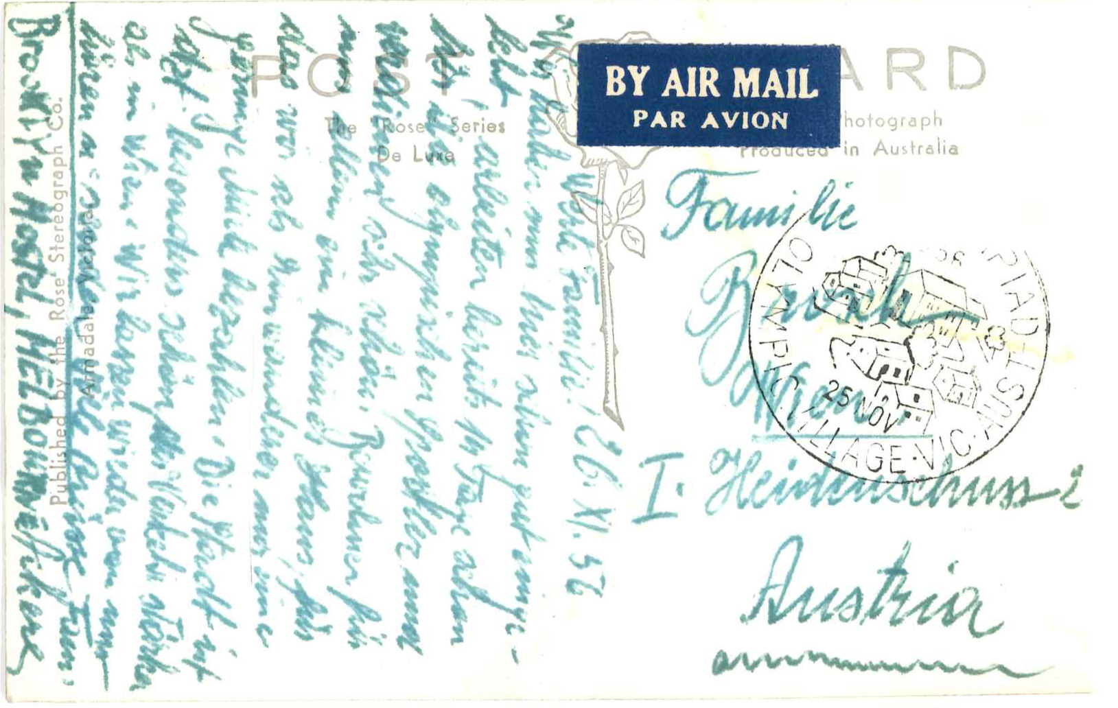 As the 1956 Olympic Games took place in Melbourne, this postcard—and the ones below—hail from the late 1950s or early 1960s (although the reverse of the above postcard is another one of those examples of what I consider a “lost art”, if only because of the nice, cursive handwriting).