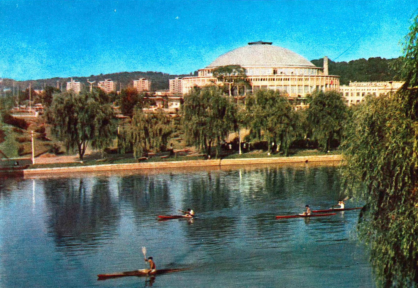 There are many more postcards, hence I’ll go on for a few more minutes: below, the “National Acrobatic Theatre”, which is not discussed in Pyongyang’s above-linked Wikipedia article (that is, in its English-language version):